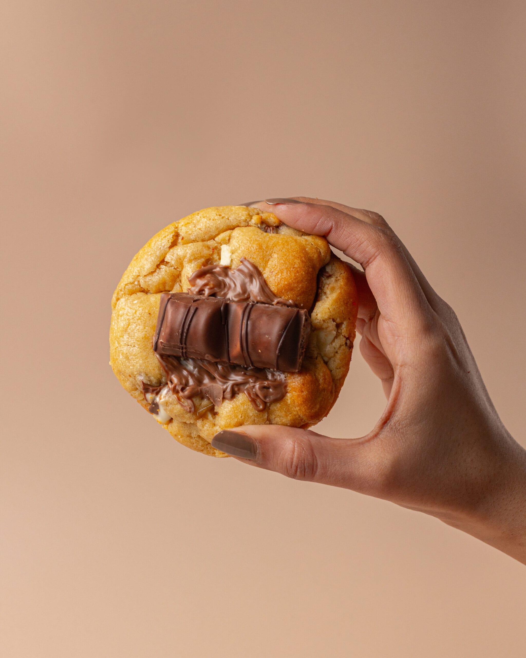A chunky NYC-style cookie filled with melted Kinder chocolate and Belgian chocolate chunks for the ultimate creamy, chocolate-loaded bite topped with a kinder bueno.