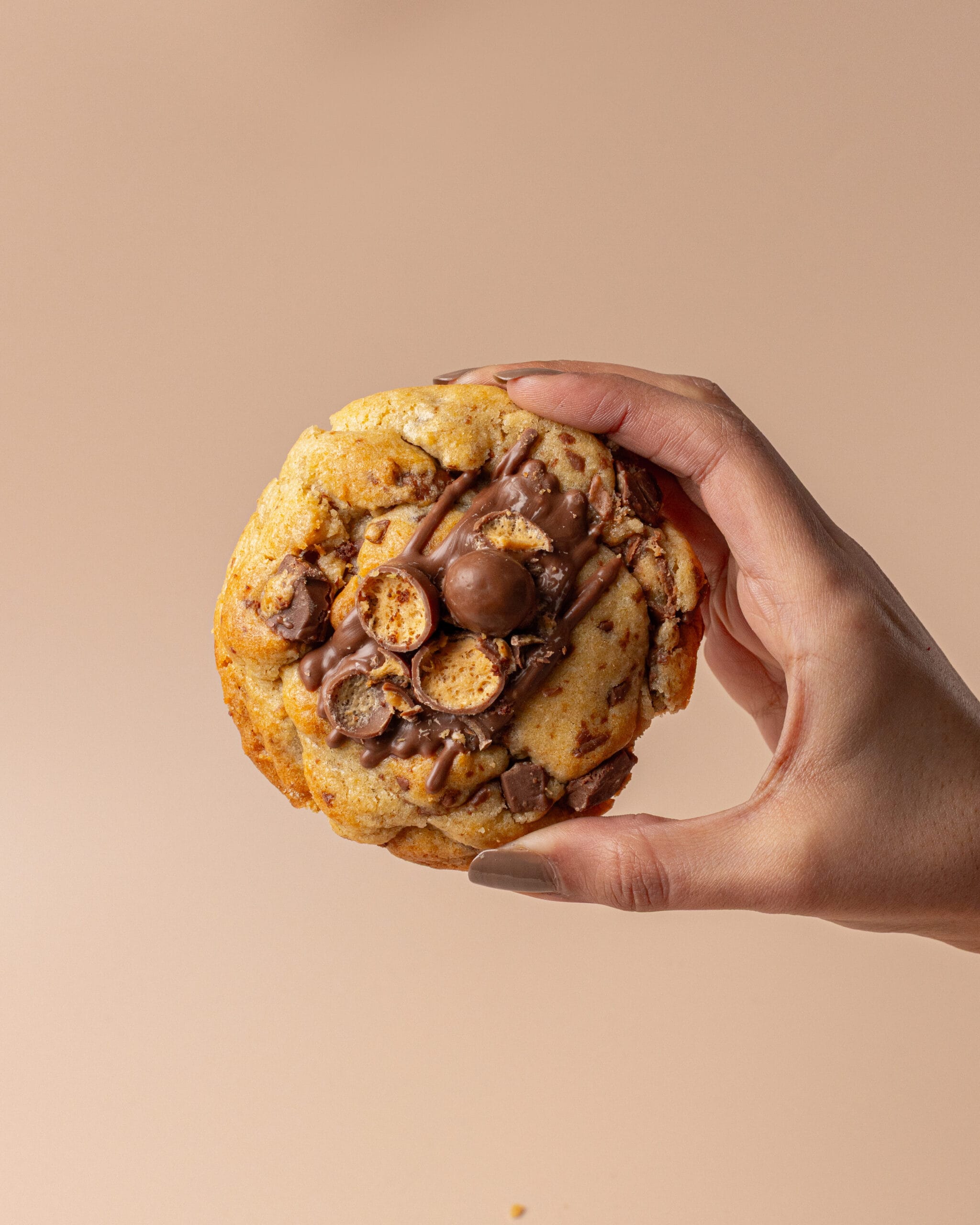 A soft-baked NYC-style cookie loaded with Belgian chocolate chunks and crunchy Maltesers pieces, stuffed with a molten milk chocolate center. Rich, crispy, and irresistibly gooey.